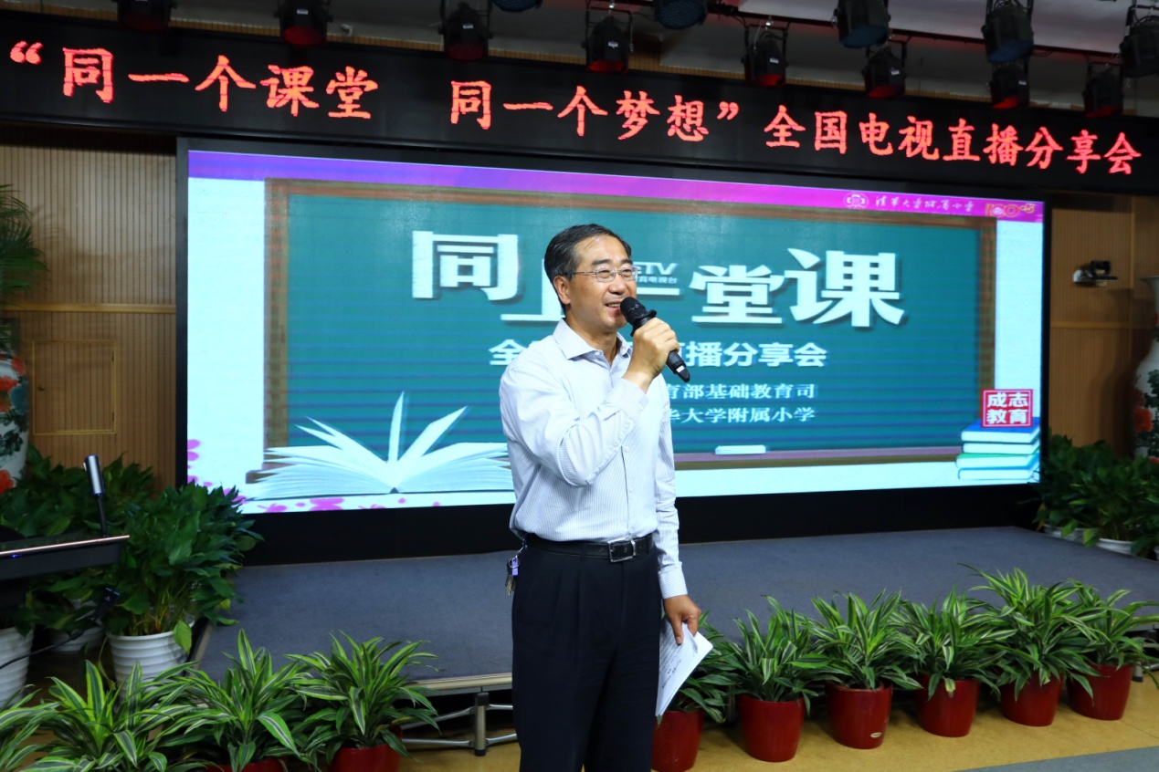 吕玉刚在讲话中表示,清华附小以高度的政治责任感和历史使命感,承担了教育部组织的中国教育电视台“同上一堂课”直播课小学阶段2020年春季学期整学期的全部课程,为全国亿万小学生提供了优质的教育资源,在社会上引起强烈反响,得到高度评价,为抗疫后方的全国基础教育作出了重大贡献。