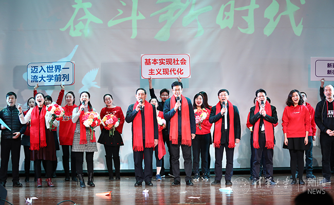 晚会在昂扬的合唱声中圆满结束。校机关的教职员工用一场晚会辞旧迎新,回顾清华与祖国的共同记忆,展望新时代的美好未来,表达了“不忘初心、牢记使命”的坚定信念。