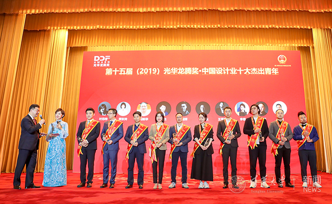 美术学院副教授王晓昕(右二)、校友郝凝辉(左三)荣获第十五届“光华龙腾奖·中国设计业十大杰出青年”荣誉称号