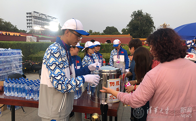 陈旭等看望服务国庆活动清华志愿者