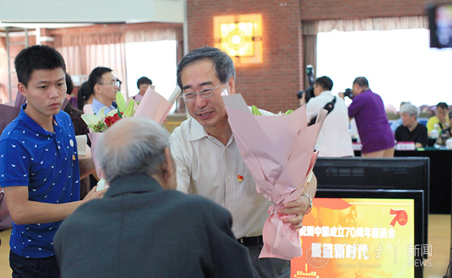 为庆祝新中国成立70周年,党中央、国务院和中央军委为建国前参加革命工作的老战士老同志和建国后获得过国家级表彰奖励的人员颁发“庆祝中华人民共和国成立70周年”纪念章。活动上,陈旭为我校9位离休干部代表颁发了纪念章。陈旭、姜胜耀、韩景阳代表学校党委为所有到场老同志送上鲜花。