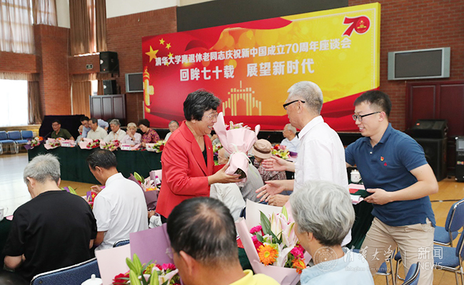 参加此次座谈的离退休老同志,有参加过抗日战争、解放战争的老战士,清华老地下党员,建国前参加革命工作、革命组织的老同志,有党龄70年、教龄工龄70年的教职工,也有1949年出生、共和国的同龄人……“伟大的祖国,繁荣昌盛!”“祖国,我爱你!”他们纷纷在留言簿上以诗文、祝福语等形式写下了对祖国的美好祝愿,抒发对学校的无比热爱。座谈会在全场合唱《我和我的祖国》歌声中结束。