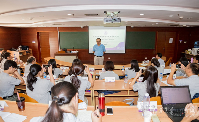 在开班式结束后的课程中,谢维和结合长期从事教育研究和学校管理工作的亲身经历和体会,为学员们梳理和描绘了中国高等教育40年改革发展的轨迹,并从增量改革到存量改革,从二元结构到三元结构,从注重效益到更加注重公平与效益的统一,从适应到优先,从基础、能力到创新,从国内走向国际等方面介绍了中国高等教育发展中出现的新特点,以及清华在这一发展过程中面临的全新挑战和使命担当。