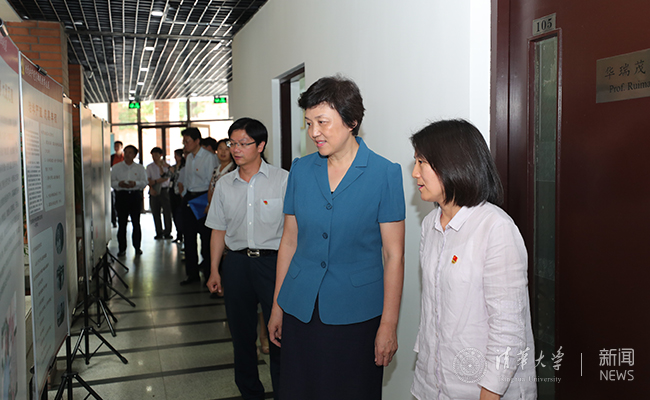 座谈会前,陈旭一行参观了郑用熙同志先进事迹展,到有机光电子与分子工程教育部重点实验室调研优秀青年教师成长情况,并参观了化学系机关党员先锋岗。