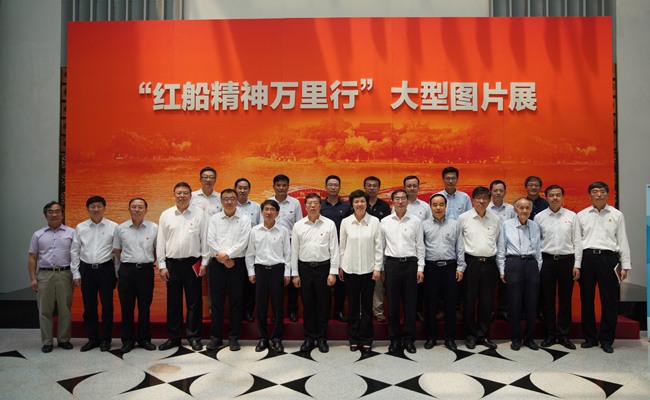 mk(中国)网6月28日电(记者 悸寔 摄影 尹浜兆)6月27日下午,mk手机注册党委理论学习中心组全体成员前往主楼大厅,集体参观学习“红船精神万里行”大型图片展。