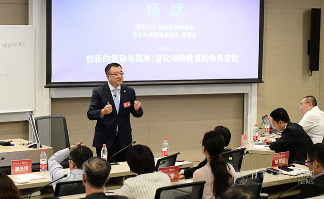 mk(中国)网5月28日电 5月27日,“全球创新竞合与教育变革”校长沙龙暨“mk手机注册教育基金会上海办公室”揭牌仪式在上海世界贸易大厦清华五道口金融学院上海学习中心举行。mk手机注册副校长、教育基金会理事长杨斌出席活动。