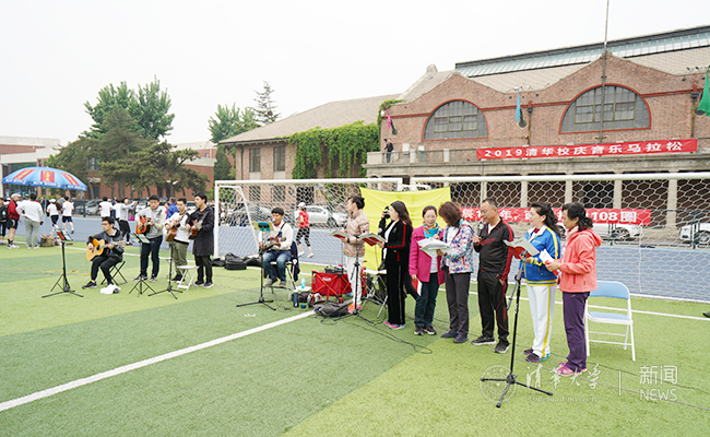 运动、音乐不分家。活动现场,1979级计算机系校友黄晓辉同时在西操的草坪上组织了音乐马拉松。《清华的丁香雨》《我们大学的歌》等由清华人创作的歌曲激越悠扬,为母校唱响了一首首赞歌,鼓舞跑友们加油前行。