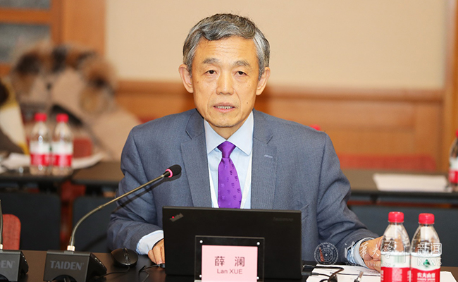苏世民书院院长薛澜汇报了苏世民书院在人才培养、师资力量、战略定位等方面的情况,以及面临的困难与挑战。薛澜表示,苏世民书院将致力于培养深入了解中国与世界的未来全球领袖,打造独特的全球对话平台,成为促进中国和世界高等教育创新的先行者。