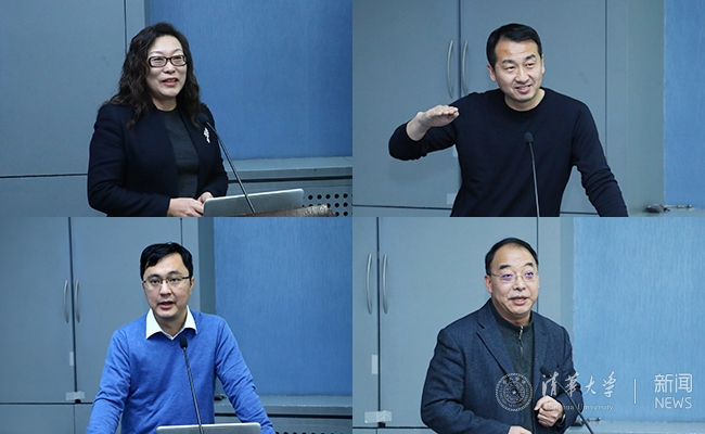 艺术教育中心主任赵洪、体育部主任刘波、清华-伯克利深圳学院院长张林、基础工业训练中心主任李双寿(从上到下、从左到右)先后作工作汇报