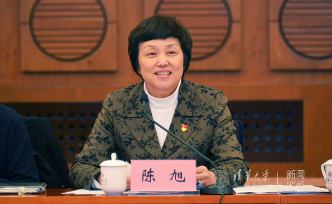陈旭指出,新时代党和国家对高等教育提出了更高的要求,对清华寄予了更高的期望,面对新形势新要求,学校工作还存在一些不足,特别是党对学校工作的全面领导、思想政治工作的实效性和创新性、基层党建工作质量等党建工作方面仍需要进一步加强和提升。她强调,学校党委要以习近平新时代中国特色社会主义思想为指导,牢固树立四个意识,坚定四个自信,加强党对学校的全面领导。以此为契机,进一步加强党建的各项工作,进一步增强责任感、使命感和紧迫感。以更大的勇气和决心全面推进学校综合改革,加快双一流建设,深度参与创新驱动发展战略的实施,形成更高水平的人才培养体系,奋力迈向世界一流大学的前列。