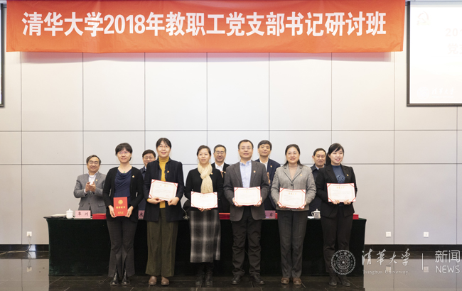 在基层党建优秀成果交流环节,能动系党委书记李宇红介绍了通过建立党员教师联系人制度,加强学生积极分子培养力量的有效措施。金融学院党委书记顾良飞分享了结合学院内非全日制学生较多的特点,建立非全日制研究生临时党支部的探索与实践。土水学院地下工程研究所党支部书记郭红仙分享了党支部在调研土木系0304项目中总结出的老一代科研人员吃苦敢上、不计名利、团结协作的0304精神。图书馆参考部特藏部党支部书记李津展示了支部特色活动中收集的反映改革开放40年以来中国和清华变化的老照片。后勤党委物业中心办公室党支部书记陈展介绍了党支部以排演红色话剧的方式学习谷文昌精神的特色活动。