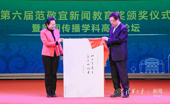 与会嘉宾为第六届范敬宜新闻教育奖获得者颁奖