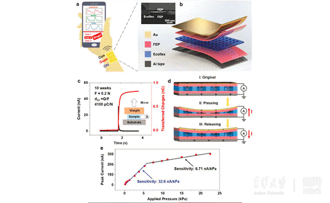 该“三明治”结构的压电驻极体传感系统,具有很高的灵敏度与稳定性,可精确采集人体桡动脉在不同压力下与不同位置的脉搏波。结合中医脉诊的经验与理念,以及大数据分析的工具,压电驻极体脉搏波传感器在可穿戴移动健康和疾病诊断方面具有广泛的应用前景与实际的应用价值,本课题组也将针对中医脉诊的客观化进行更加深入的研究。