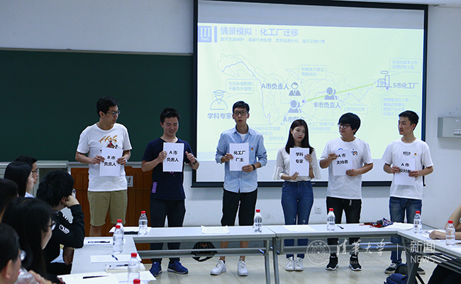 在情景模拟环节,大家以“长江边的化工厂迁移”为题进行角色扮演和情景模拟,并就长江经济带建设中的生态问题展开了热烈讨论。