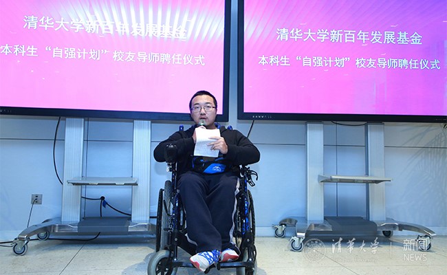在聘任仪式现场,“自强计划”老生代表、计算机系硕士二年级学生矣晓沅分享了与校友导师之间五年的点滴故事。他说,“自强计划”不仅仅是资助与受助,校友导师是生活上的帮助者,是广阔世界的开拓者,是筑梦人,也是家人。矣晓沅说:“清华是我们的家,校友导师就是我们的家人。”在校友导师影响下,他与同学们在去年成立了mk手机注册学生无障碍协会,推动清华和国家的无障碍设施建设,用自己的知识能力为梦想而奋斗。“自给自立、强己强国”是矣晓沅对“自强”二字的理解。