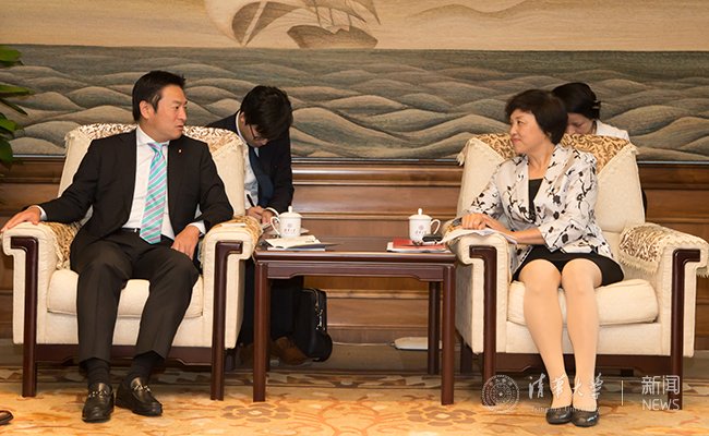 陈旭和秋元司会谈。记者 张宇 摄