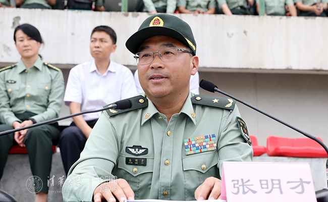 张明才少将在结业典礼讲话中首先祝贺同学们圆满完成军训任务,勉励同学们用好军训成果,走好人生旅途,并希望大家胸怀远大理想、志存高远,刻苦学习、锐意进取,知行合一、不忘初心,砥砺前行、增强本领,早日成为报效祖国、服务人民的栋梁精英。