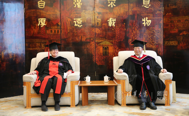 授予仪式前,邱勇与安娜·玛丽·科斯校长进行了简短会谈。双方就全球创新学院(GIX)的最新工作、创新人才培养和大学在促进人类社会发展方面应当发挥的作用等问题交换了意见。