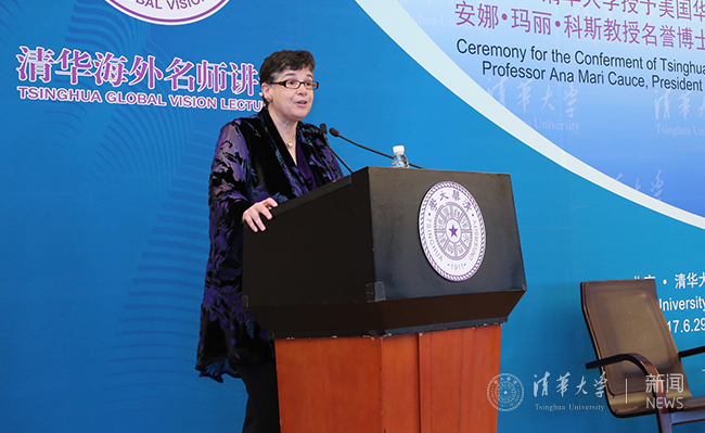 安娜·玛丽·科斯(Ana Mari Cauce),国际知名心理学家、教育家,出生于古巴哈瓦那,在迈阿密大学获得英语和心理学学士学位,在耶鲁大学获得心理学博士学位。1986年进入华盛顿大学,先后担任校务长、行政副校长、署理校长等职,2015年10月起担任校长。华盛顿大学位于美国西雅图,1861年建校,是享有全球声誉的综合性研究型大学,美国公立常春藤盟校之一,在生命医学、计算机科学、物理、数学、教育、公共关系等领域具有很强的实力。