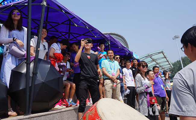 看台上热情欢呼的清华啦啦队。胥欣 摄