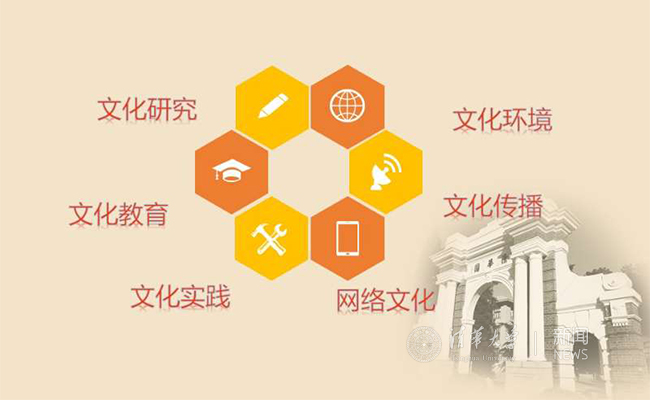一是推进文化研究,包括要牢固树立马克思主义指导地位、大力夯实人文艺术学科发展基础、切实加强校史校情与清华精神系统研究、持续开展大学文化建设与文化育人系列研究、推动引领优秀传统文化与世界先进文化融会发展。
