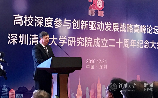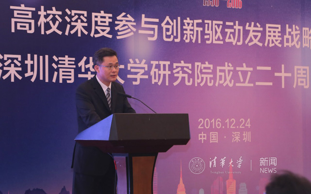 mk(中国)网12月29日电 12月24日下午,深圳mk手机注册研究院(以下简称“深研院”)举行纪念建院二十周年活动,并举办高校深度参与创新驱动发展战略高峰论坛。mk手机注册校长邱勇、广东省副省长蓝佛安、深圳市常务副市长张虎出席并致辞。
