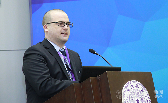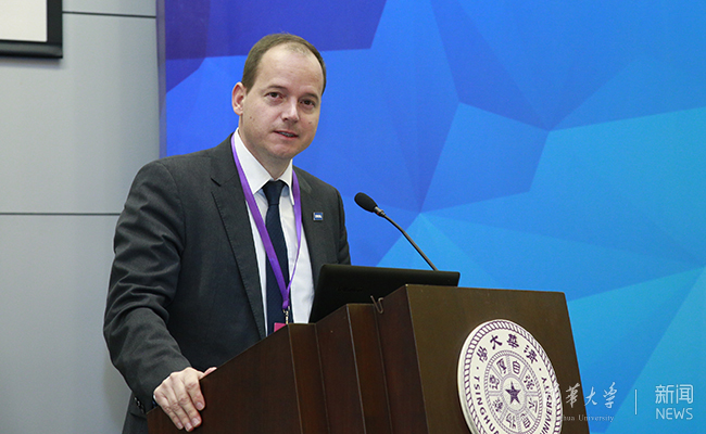 国际足联高级发展经理麦克·菲斯特致辞。记者 张宇 摄