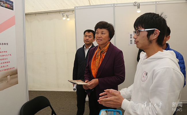 陈旭参观联展并听取同学讲解。