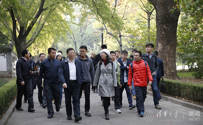 邱勇与同学们从工字厅出发。 记者 张宇 摄