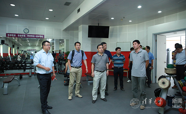 2016秋季学期的教学准备工作检查还把体育教学场所纳入其中。从综体的多功能操房、击剑室、综合力量区,干净整洁的游泳馆,到沙排、轮滑、棒球、网球、篮球、排球等各个设施一流的运动场地,再到挂着2016 CUBA清华男女篮队员和优秀田径运动员照片的西体育馆,“无体育,不清华”的浓厚体育氛围得到充分体现,吉俊民、杨斌一行对体育部不断完善体育设施的举措和细节表示了肯定。