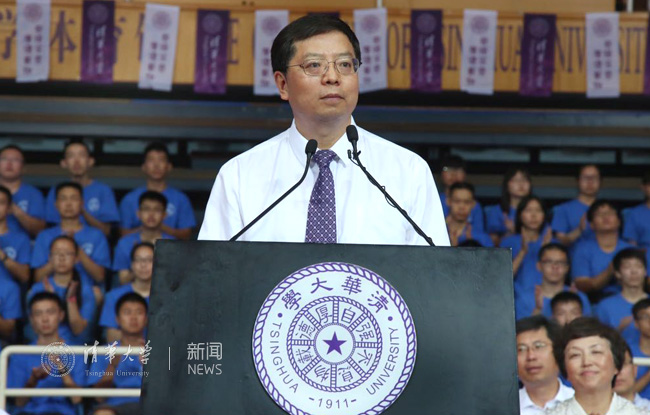 校长邱勇代表全校师生员工,对新同学的到来表示热烈的欢迎,并祝愿同学们在清华园里扬起理想的风帆,挥洒绚烂的青春!