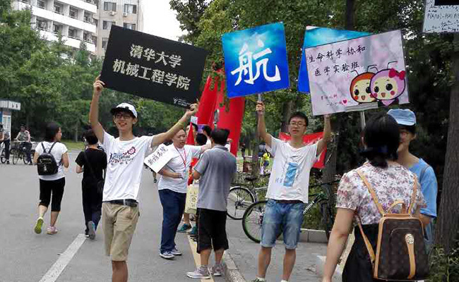 在紫荆公寓迎新现场,各院系迎新点、超市临时摊位、咨询处等一字排开。每当满载新生的校园大巴抵达,热情的学长学姐们就会把新生“抢到”各自院系的迎新点。迎新点布置各有特色:汽车系摆出了学生自制的、曾在全国大赛中亮相的方程式赛车,吸引众多新生和家长拍照留念;计算机系制作了标有6字班新生籍贯的大地图,新生报到时在自己的家乡处贴上纸条,写下寄语,来自五湖四海的新同学很快成为和睦融洽的一家人。