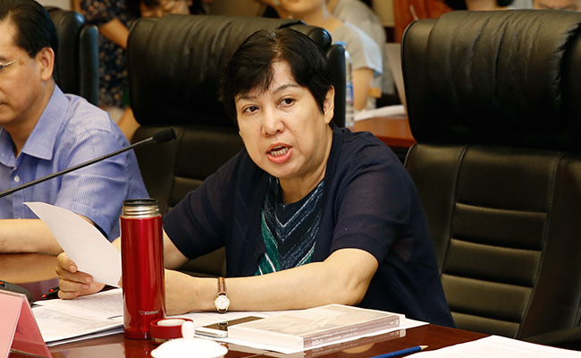 北京外国语大学原副校长、《外国文学》主编金莉发言。记者 张 宇 摄