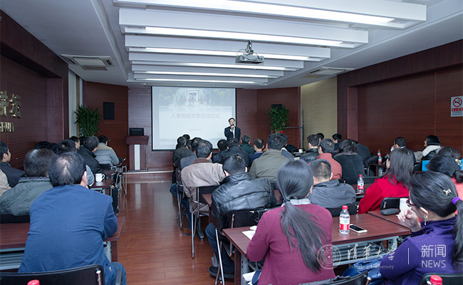 姜胜耀代表学校对热能系人事制度改革工作的正式启动表示祝贺,对热能系前期工作给予充分肯定,对全系教师给予这次人事改革工作的理解和支持表示感谢!他指出:这次由学校顶层设计、院系主导、教师参与的全校人事制度改革,是使命驱动的改革,是大势所趋。要让新的制度深入全体教师心中,形成一种大家自觉尊重和维护的文化,为热能系的发展注入新的动力。姜胜耀同时勉励热能系发挥传统学科优势,在新的人事制度中探索出引领世界潮流并具有中国特色、清华风格的工科发展模式。