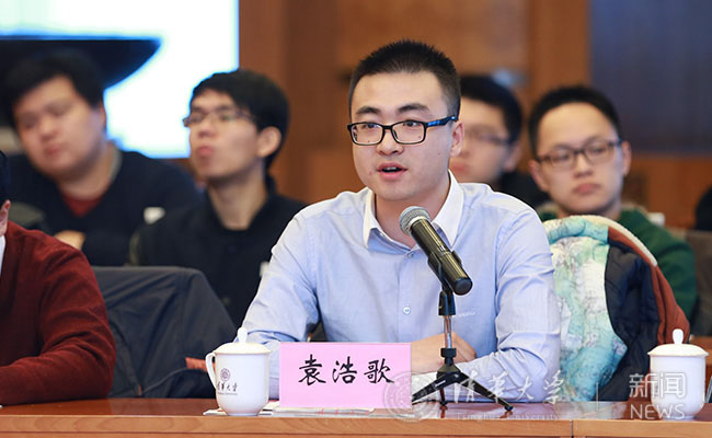 袁浩歌在发言中表示,在“一二·九”运动和“一二·一”运动中,清华师生始终英勇地战斗在运动前列,用实际行动诠释着“自强不息、厚德载物”的校训,他们的爱国精神代代传承,激励着一批又一批清华学子。我们一定会继承和发扬前辈们的爱国奉献精神,把握时代脉搏,奋发图强,肩负起民族复兴的使命,无悔于青春,无愧于清华。