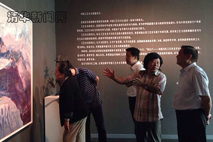 刚踏进展厅,刘淇就被袁运甫教授的高比林壁毯《喜马拉雅》和乔十光教授的蛋壳镶嵌漆画《水乡》所吸引,并驻足仔细观察作品的材质和工艺。在洪兴宇、沈励、岳嵩、代敏华、王秦、林晓燕等教师创作的获得过国际、国内金奖的作品前,刘淇与大家就作品创作思路和艺术展现手法展开讨论。观看王国利和邹亚华的作品《老林》时,刘淇对传统手工技艺的精妙表示赞赏。