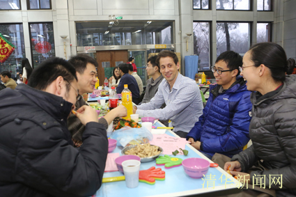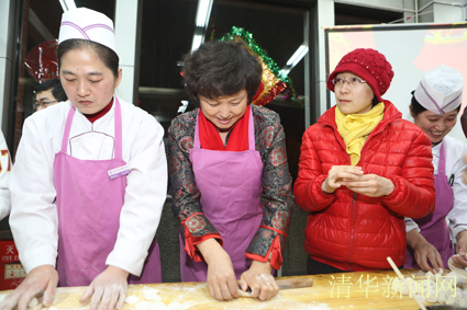 图为陈旭和师生一起包饺子。记者 智斐 摄