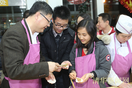 在热烈的掌声中,晚会正式开始。陈吉宁发表了热情洋溢的讲话,代表学校向寒假期间留校同学致以亲切慰问和新春祝福,鼓励同学们在新的一年里努力学习,奋发向上,取得更好成绩。校领导为现场的每位同学派发了慰问品,与同学们一起包饺子,气氛融洽热烈。