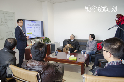 图为督导组一行听取电子系青年教授陈巍汇报。学生记者 王皓冉 摄
