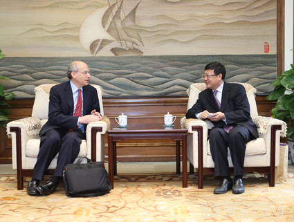 图为陈吉宁会见勒布朗校长。记者 智斐 摄