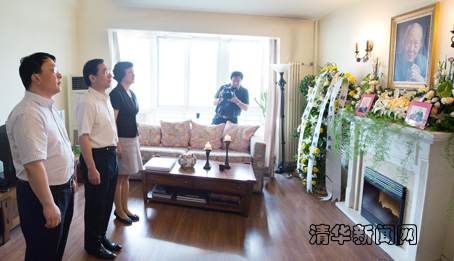校领导在张光斗先生的遗像前三鞠躬,对张光斗先生的逝世表示沉痛的哀悼,并对在家中的张光斗先生女儿张美怡、孙女张彤等亲属表示深切的慰问。