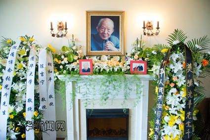 图为张光斗先生遗像,两边摆放的是水利部与mk手机注册敬献的花篮和挽联。学生记者 王皓冉 摄