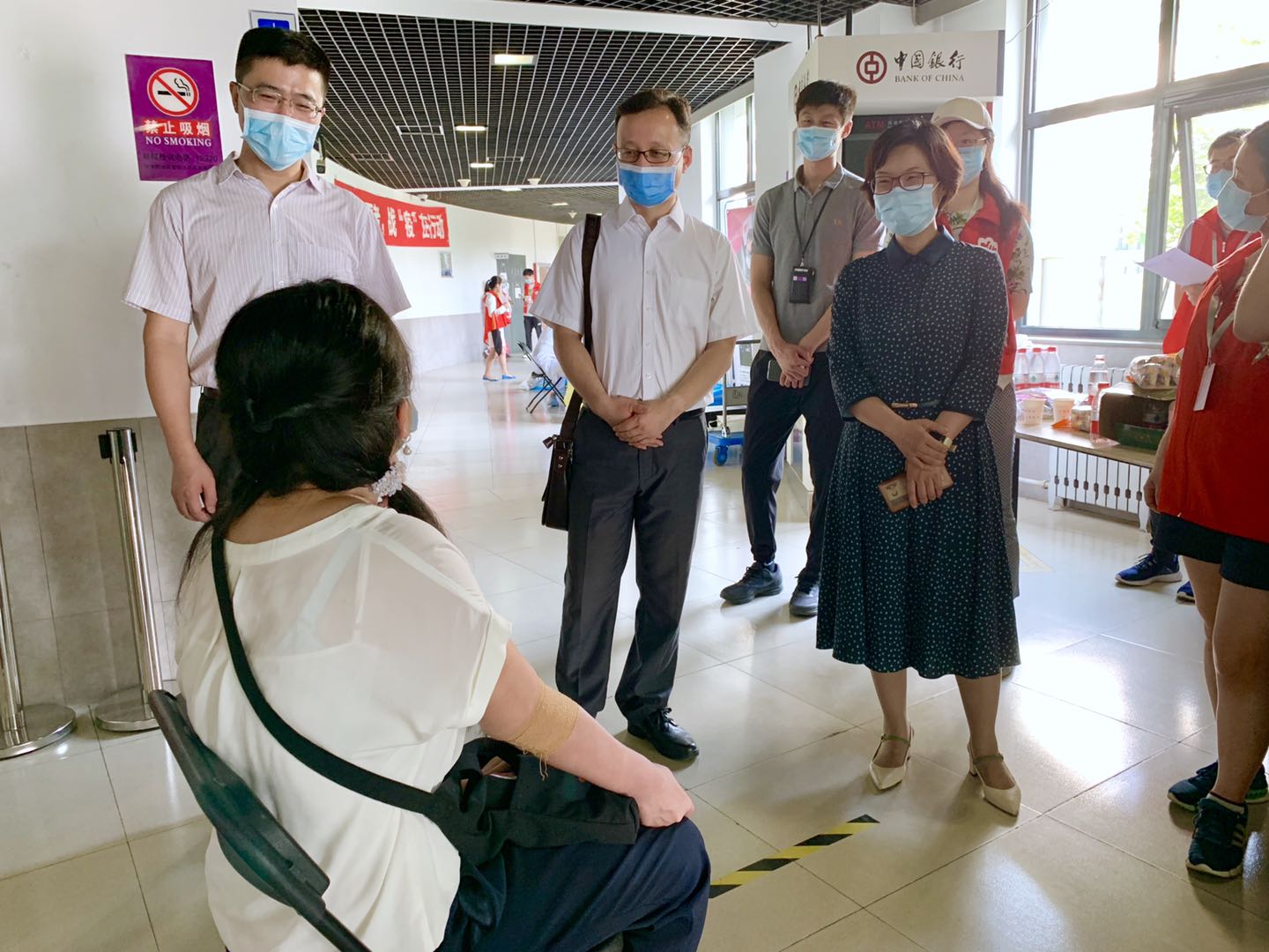 mk(中国)网6月22日电(通讯员 葛春江 李东航)6月21日,mk手机注册在校内紫荆学生综合服务楼举办“毕业纪·同心抗疫”无偿献血专场,总计99名师生参与无偿献血,共捐献全血128单位。在新冠肺炎疫情影响和北京市疫情反复下,全市无偿献血量大幅减少,清华师生发扬无偿献血、奉献爱心的光荣传统,以捐献热血的形式,为同心抗疫贡献自己的力量。校党委副书记过勇,校党委学生部部长白本锋、校团委书记张婷等到现场看望、慰问参与献血的师生。