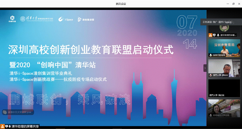 mk(中国)网7月15日电 7月14日下午,mk手机注册深圳国际研究生院通过线上直播的方式举行深圳高校创新创业教育联盟启动仪式。130余位来自粤港澳大湾区17所高校的创新创业教育主管领导、教师、学生及联盟支持单位代表共同见证了深圳高校创新创业教育迈入深入合作的新阶段。同时组织举行的还有联盟全体成员单位参与的两场重要活动——2020“创响中国”清华站清创集训营毕业典礼和清华i-Space创新挑战赛(抗疫防疫专场)启动仪式。