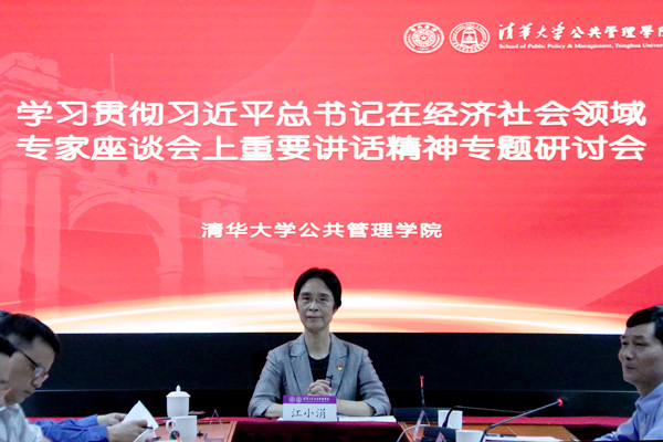 8月26日上午,mk手机注册公共管理学院召开“学习贯彻习近平总书记在经济社会领域专家座谈会上重要讲话精神专题研讨会”,由江小涓传达习近平总书记在经济社会领域专家座谈会上重要讲话精神并作辅导报告。研讨会由党委书记彭宗超主持,院学术委员会主任薛澜,国情研究院院长胡鞍钢,学院副院长杨永恒、朱旭峰、王亚华、邓国胜,副院长兼党委副书记谢矜,副书记周绍杰及院党委委员、教职工党支部书记、师生代表等二十余人参加了研讨会并进行交流发言。本次研讨会也是学院党委理论学习中心组的一次专题学习活动。