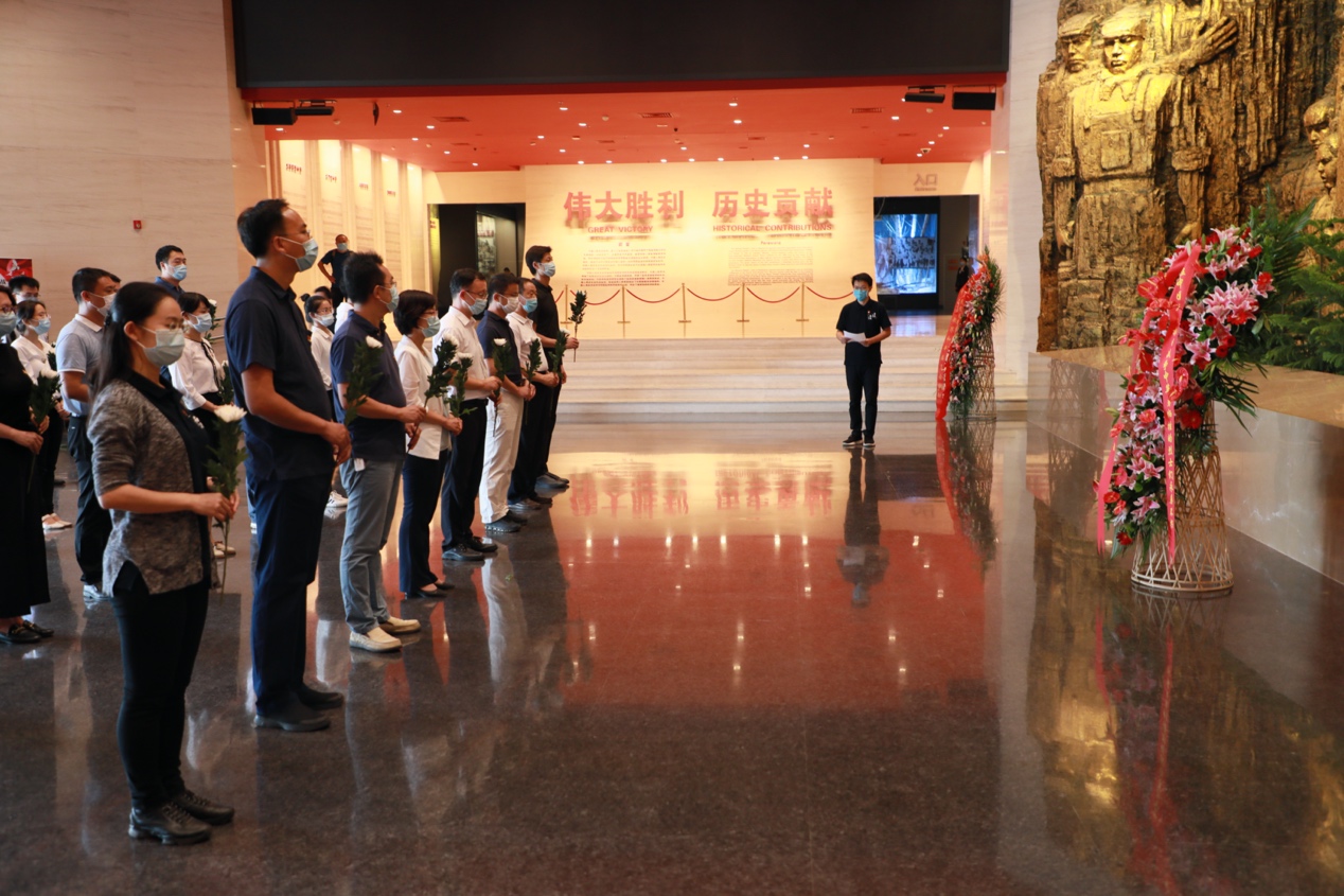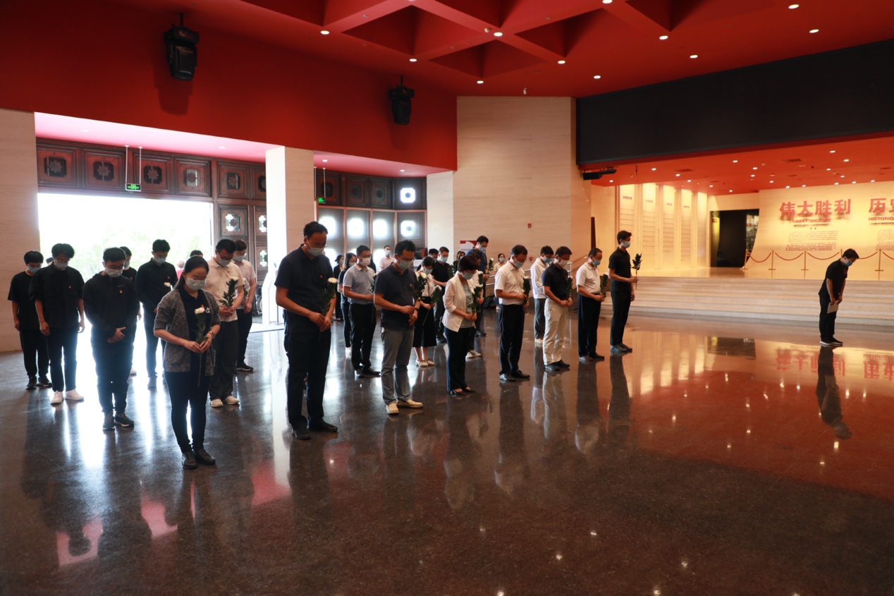 其间,各位老师带领同学向在抗日战争中牺牲的英杰默哀鞠躬,并敬献鲜花和花篮。不忘历史,永念国殇。