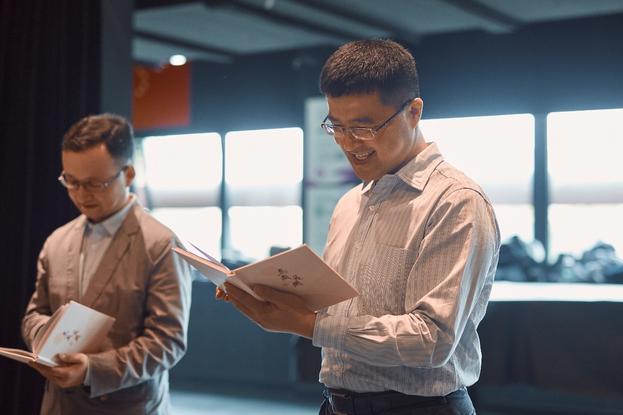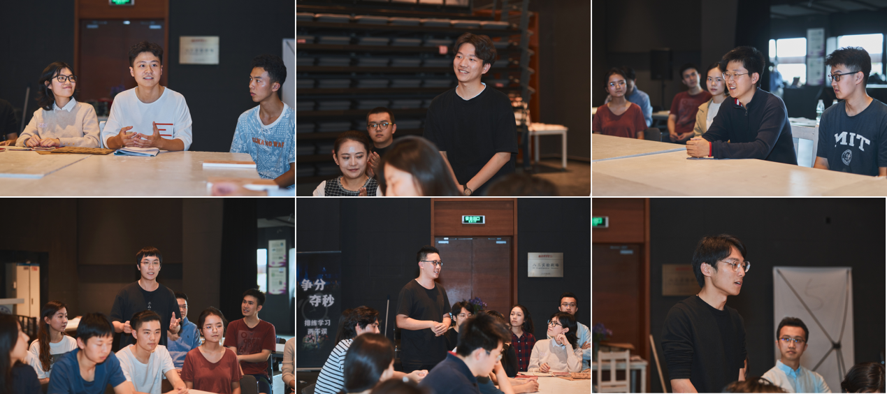 在剧组中也有一批默默无闻的幕后工作者。新景片演员李嘉元分享了他对景片工作的认识,经过六天的排练,他逐渐理解了导演所说的“要满含热泪地推景片”。负责音频台口工作的邓谦一分享了排练中令他印象深刻的细节,“将音乐融入整个表演”,几天的排练不仅带给他技术上的收获,更提升了作为一个幕后工作者的修养。