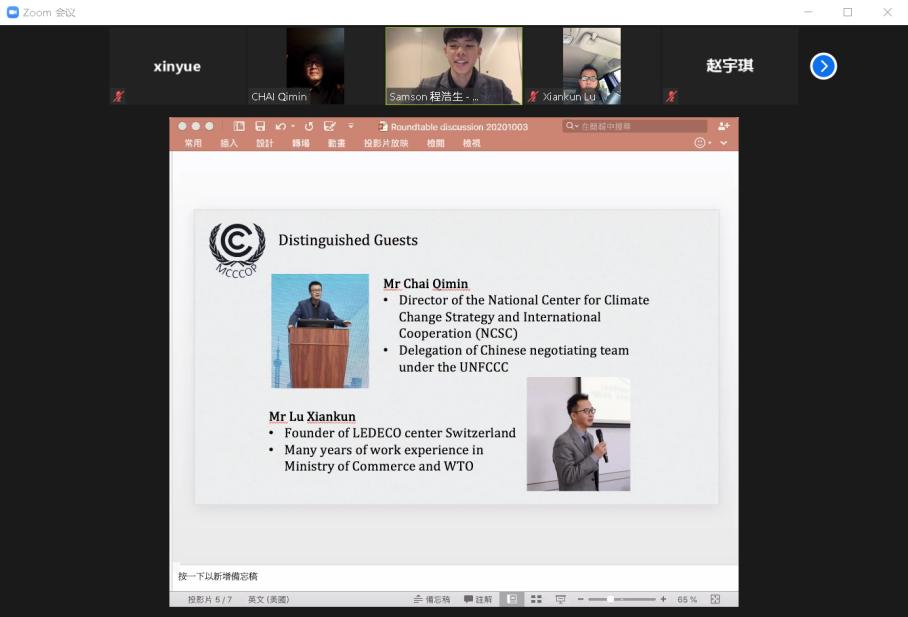 此外,本次活动还开展了青年边会、圆桌会议等相关活动,近800名观众在线上平台参与其中,进一步提高了本次活动的影响力。青年边会中,同学们提出了许多富有创造力的方案,其中包括绿色支教,绿色时尚等概念。圆桌会议邀请了国家应对气候变化战略研究和国际合作中心战略规划处主任柴麒敏、中国常驻WTO前参赞和综合组长卢先堃与同学们进行了有关国家应对气候变化的交流。