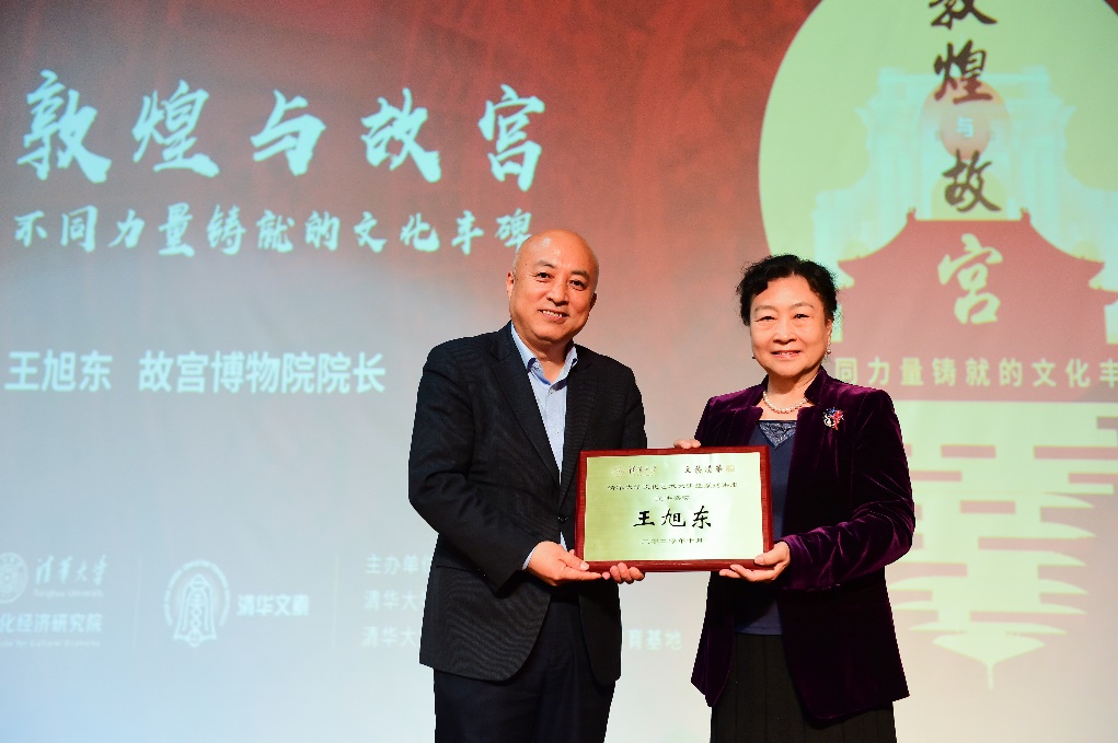最后,中国政策科学研究会副会长、mk手机注册文化经济研究院顾问委员会主席、原文化部副部长赵少华为王旭东院长颁发了“mk手机注册文化艺术大讲堂”纪念奖牌。千年石窟,文化交融;百年紫禁城,宫阙巍峨。通过本场文化艺术大讲堂,清华师生共同聆听和感受了中国文化的传统与经典、力量与创新。
