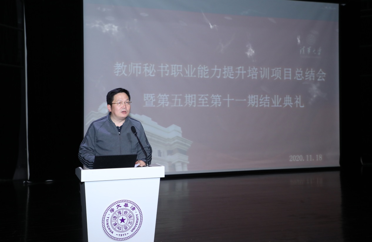 政策研究室主任孙海涛作为主办单位代表发言。他谈到,培训搭建起教师秘书间的学习平台,增进各单位、院系之间的了解与信任,在此基础上更有利于彼此间达成共识,增进合作效率。他强调,大学作为学习型组织要想有持续的生命力,需要保持不断学习的姿态,不断提升自己,不断加强对清华精神的理解,才能更好地服务学校、服务教育工作。从2018年至今,教师秘书培训项目经过两年发展,取得丰硕成果,未来需要依靠每个人的努力把项目越办越好。